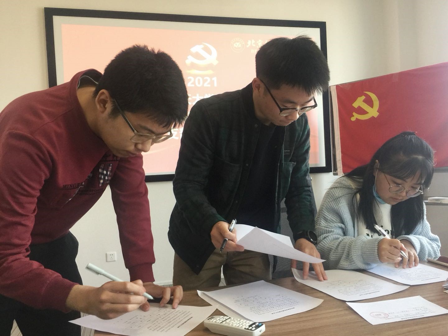 在会议结束前,党建特邀组织员邓彦敏老师发表了总结讲话。她首先向七位同志表达了衷心的祝贺,希望同学们再接再厉,继续努力。同时建议党员讨论中多一些批评,大胆指出其他同志及自身存在的不足与问题,以促进党员的成长。邓老师说到,今年是建党百年、是“十四五”规划的开局之年,7名同志在此时入党具有更为深刻的意义。同时她也强调,到2050年我国将全面建成富强民主文明和谐绿色的社会主义现代化国家,希望在座的各位年轻同学们能够奉献出自己的努力与智慧,以扎实的专业知识为国家和人民创造财富,为祖国的建设添砖加瓦!