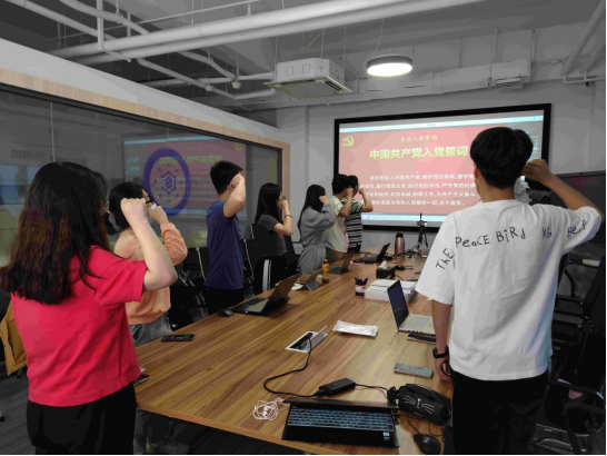 在重温入党誓词环节,高丰奕同志作为北京亚洲成人在线一二三四五六区网络空间安全学院本科生第二党支部分会场领誓人,带领各位党员同志再次庄严向党宣誓。