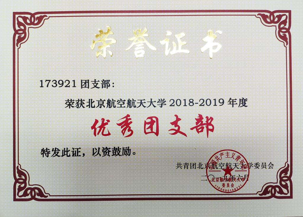 为加强我校共青团的基层组织建设,推动团支部职能化建设,围绕立德树人根本任务,激励基层团支部学习贯彻习近平新时代中国特色社会主义思想,以“四进”为手段,以“四信”为目标,切实学习和践行社会主义核心价值观,弘扬北航“四爱精神”,深入开展“青春心向党·建功新时代”教育实践,创先争优,激励和引导广大团员大力弘扬爱国主义精神,推动各级团组织工作水平的提高。校团委在全校开展2018—2019学年度校 “优秀团支部”评选活动,网络空间安全学院173921团支部获2018—2019学年度校“优秀团支部”荣誉称号,予以表彰。