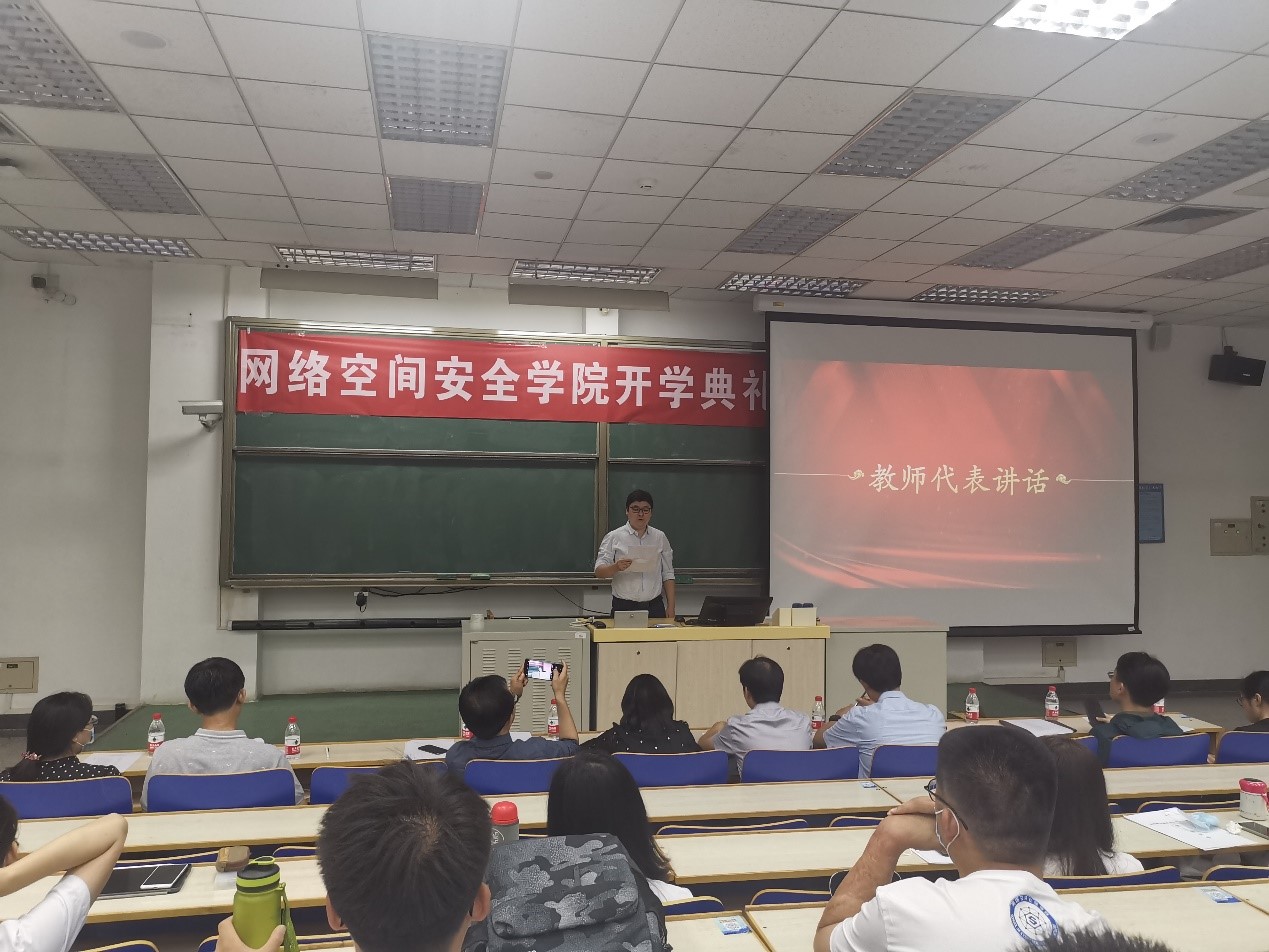 9月20日下午,北京亚洲成人在线一二三四五六区网络空间安全学院2020级新生开学典礼在一号教学楼举行。学院院长刘建伟、党委书记蒋燕玲、副院长伍前红、党委副书记祝贺等出席本次开学典礼,院长助理、各系主任、专兼职辅导员、2020级全体同学等100余人参加开学典礼。典礼由学院党委副书记祝贺主持。