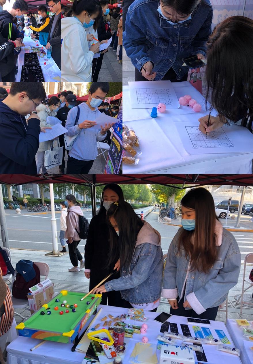 本次网络空间安全学院外场活动在开展前一周开始预热,通过发布推送、集赞得奖等方式吸引同学参与,提高嘉年华热度。现场提供了三种有趣的游戏方式,分别为九连环、数独和桌上台球,并且为同学们设计了独特的网安校庆嘉年华外场合影框,供全校师生合影留念。